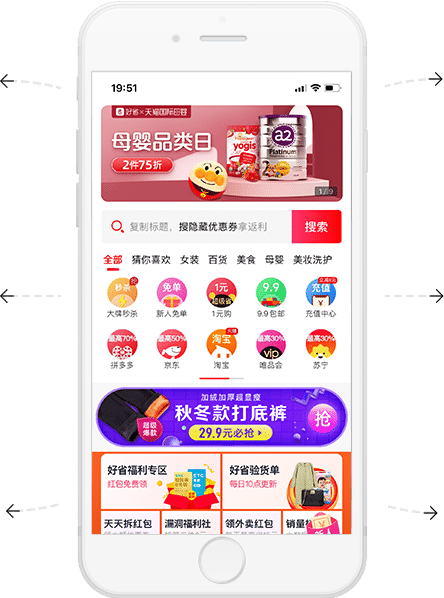 实时同步各大电商平台,可获取与平台活动叠加优惠券,更划算更便宜。
